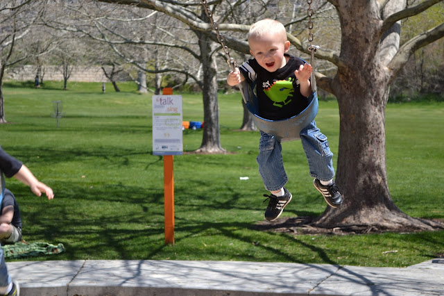 Kaitlyn was blessed on April 28th, and on Saturday we went to the park with the family that was in town. Here is Thomas loving the swings.